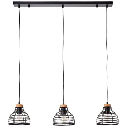 Brilliant Avia Hanglamp Metaal Hout Zwart Hout | Geschikt voor 3x E27