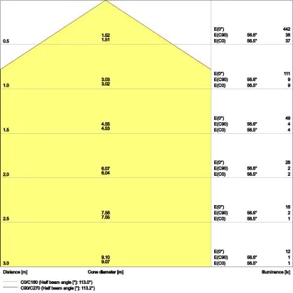 ![]() De kleurcode is een combinatie van de kleurweergave (CRI) en lichtkleur (Kelvin). Het eerste getal is de kleurweergave (1 = zeer slechte kleurweergave, 9 = maximale kleurechtheid). Het tweede en derde cijfer betreft de lichtkleur. Een lamp met kleurcode 830 heeft bijvoorbeeld een goede kleurweergave en straalt een warm wit licht uit (3000K), waar een lamp met de kleurcode 940 een uitstekende CRI heeft en een koel wit licht (4000K) uitstraalt. |
